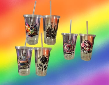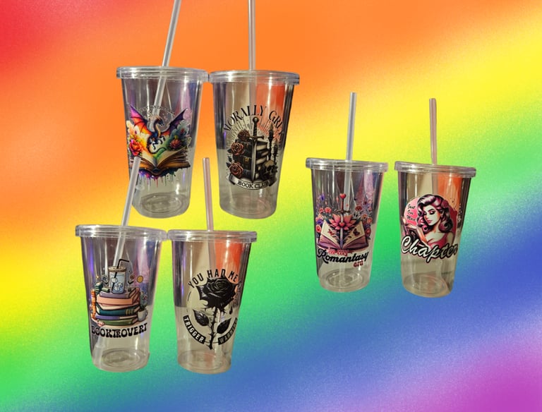A cup that is a little smaller than the larger forty ounce styles, this one boasts a modest twenty ounces. Made of steel, these come with one straw and a decal either in full color or in a single color. Enjoy your drink as you read your book. With a lid, you're less likely to knock it over and spill it!