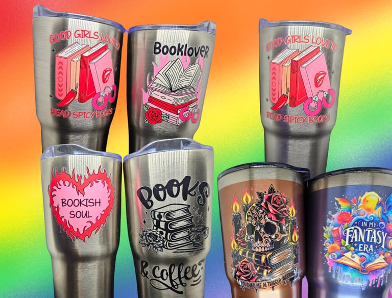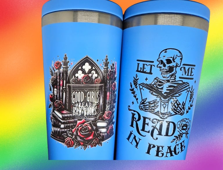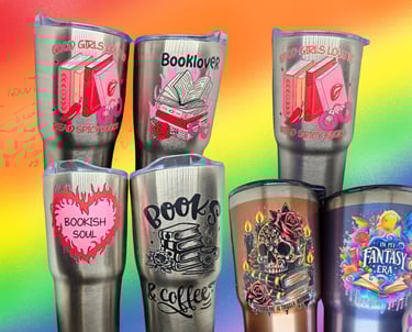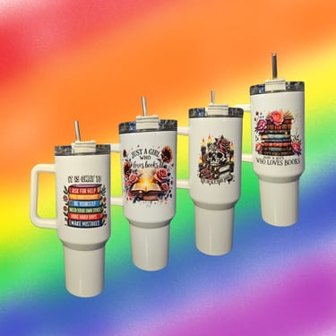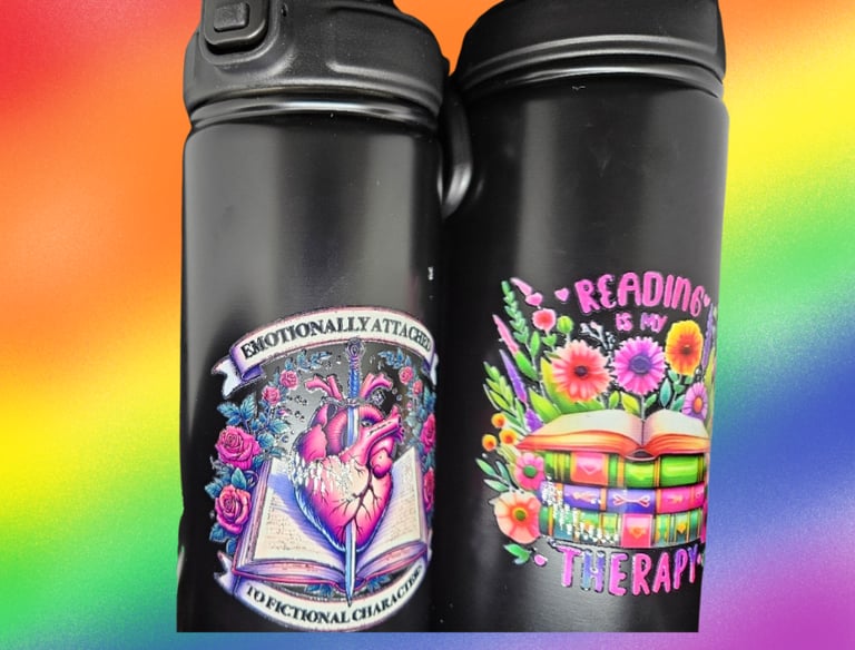 Something is special about having something that is both beautiful and useful. These water bottles feature some nice images and various decals that represent the love of reading. Some are color, and others are single colored.
