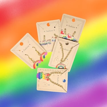 Included in the Proud Box only. Enjoy a unique set of earrings and a necklace to reflect your pride every day of the year. This jewelry is sure to add to your own collection or to someone else's. Note that the earrings and necklace may not have matching charms on them.