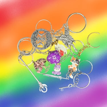 Included in all boxes. A lovely addition to anyone's keys, these are random styles and lengths. Some are even weapon charms! Show your love of all things fun with these, whether you're a gamer, a reader, or if you want to carry a piece of pride wherever you go!